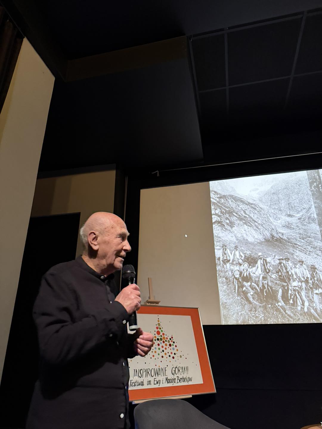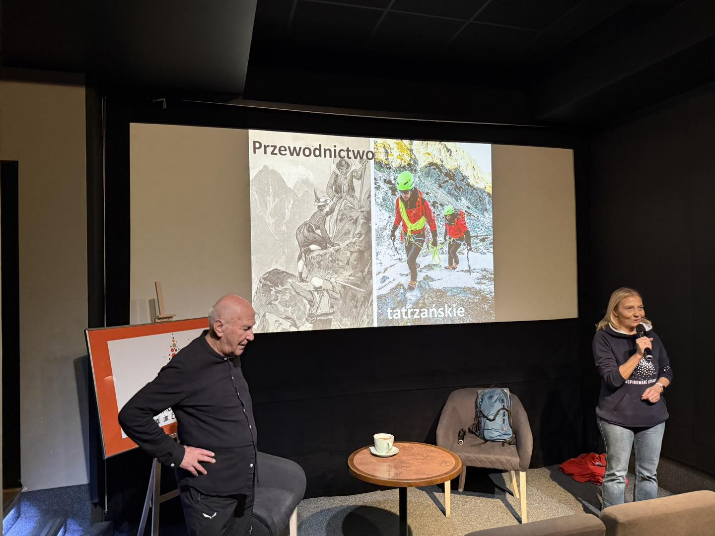 Zanim rozpoczęliśmy oglądanie filmu „150 lat przewodnictwa tatrzańskiego” autorstwa Piotra Mazika i Stanisława Berbeki, historię przewodników przybliżył Pan Apoloniusz Rajwa. W swej opowieści, wzbogaconej zdjęciami, podkreślił rolę przewodników nie tylko jako osób prowadzących w góry, ale także jako kustoszy wiedzy o przyrodzie, historii i krajobrazach Tatr.