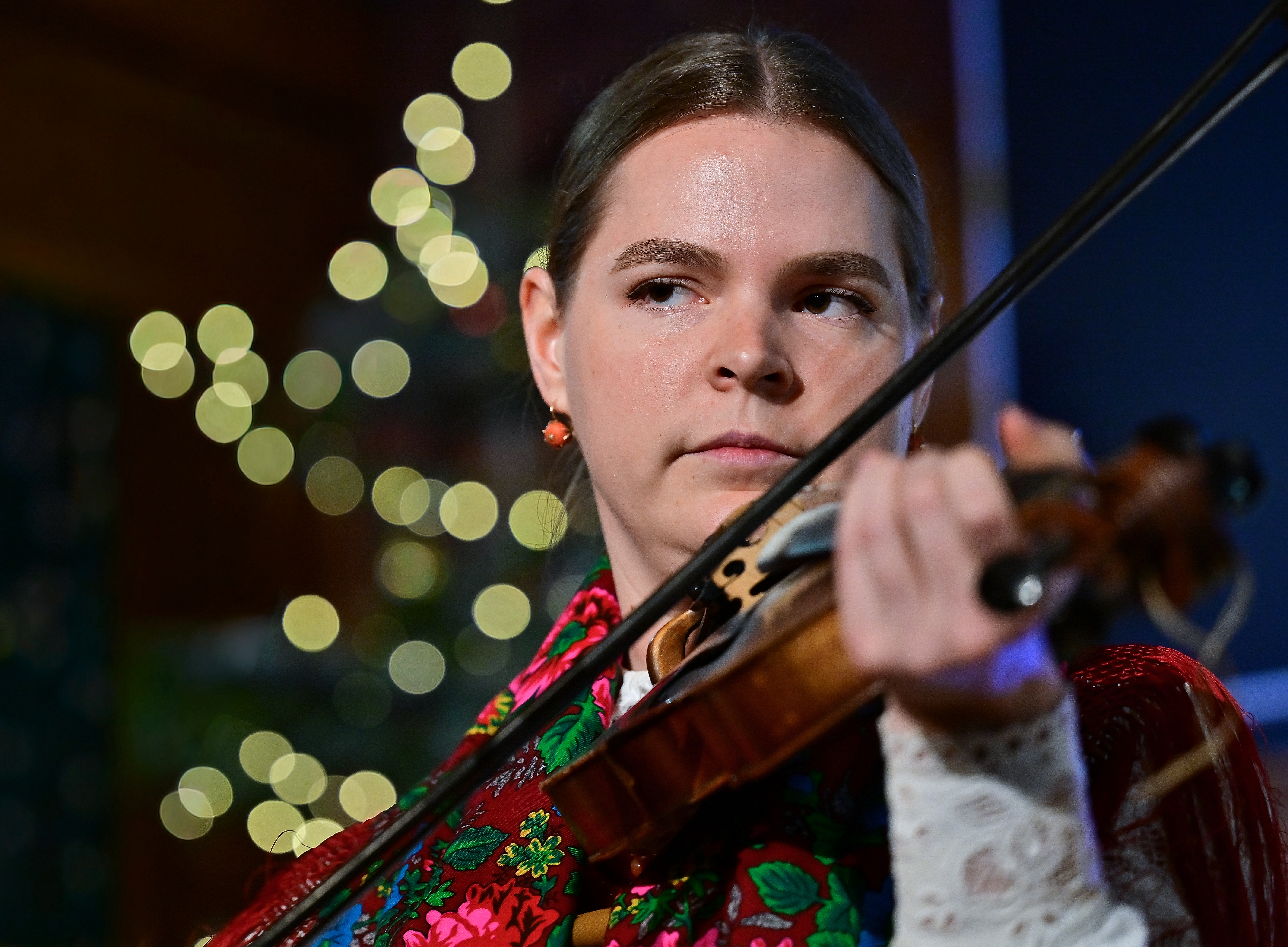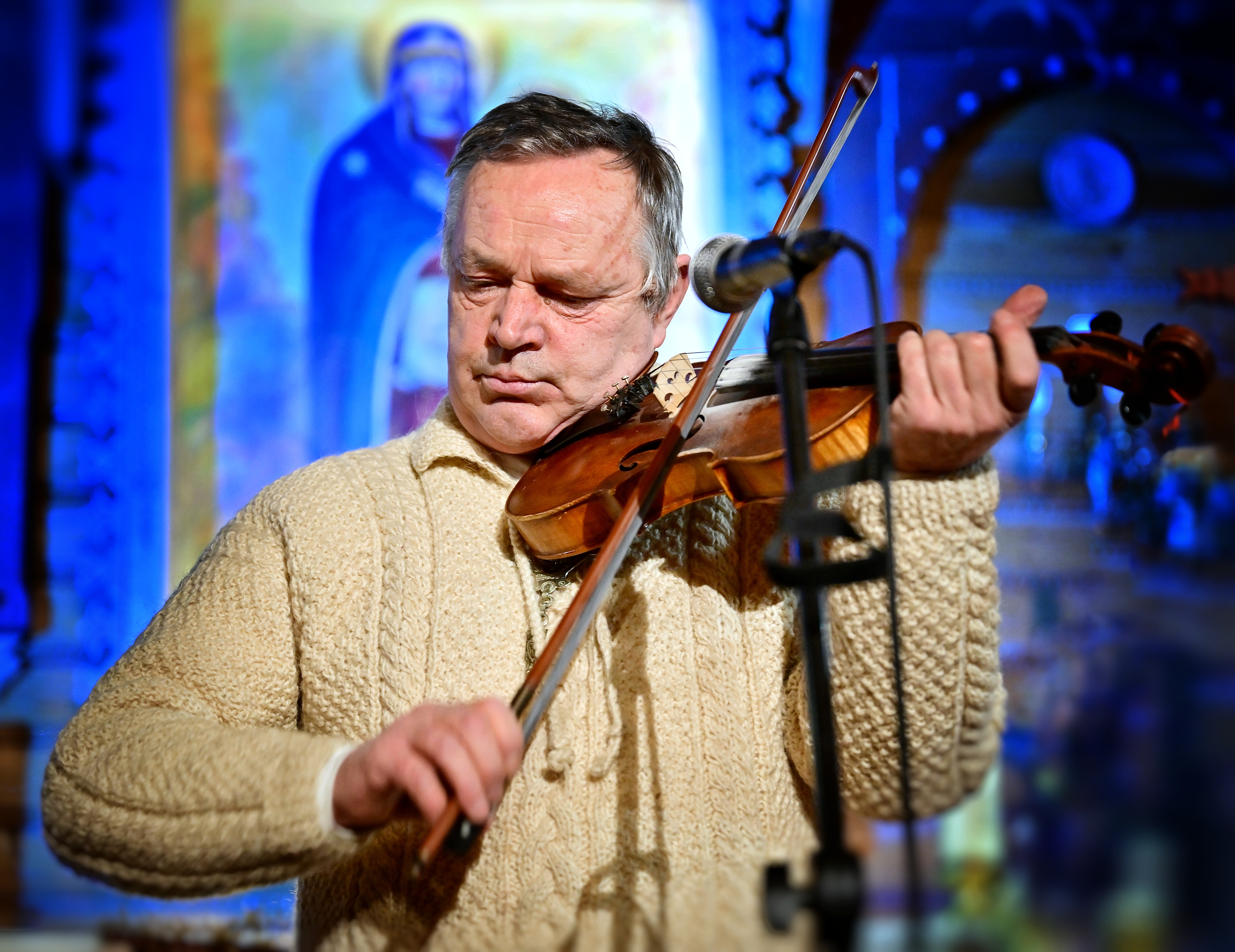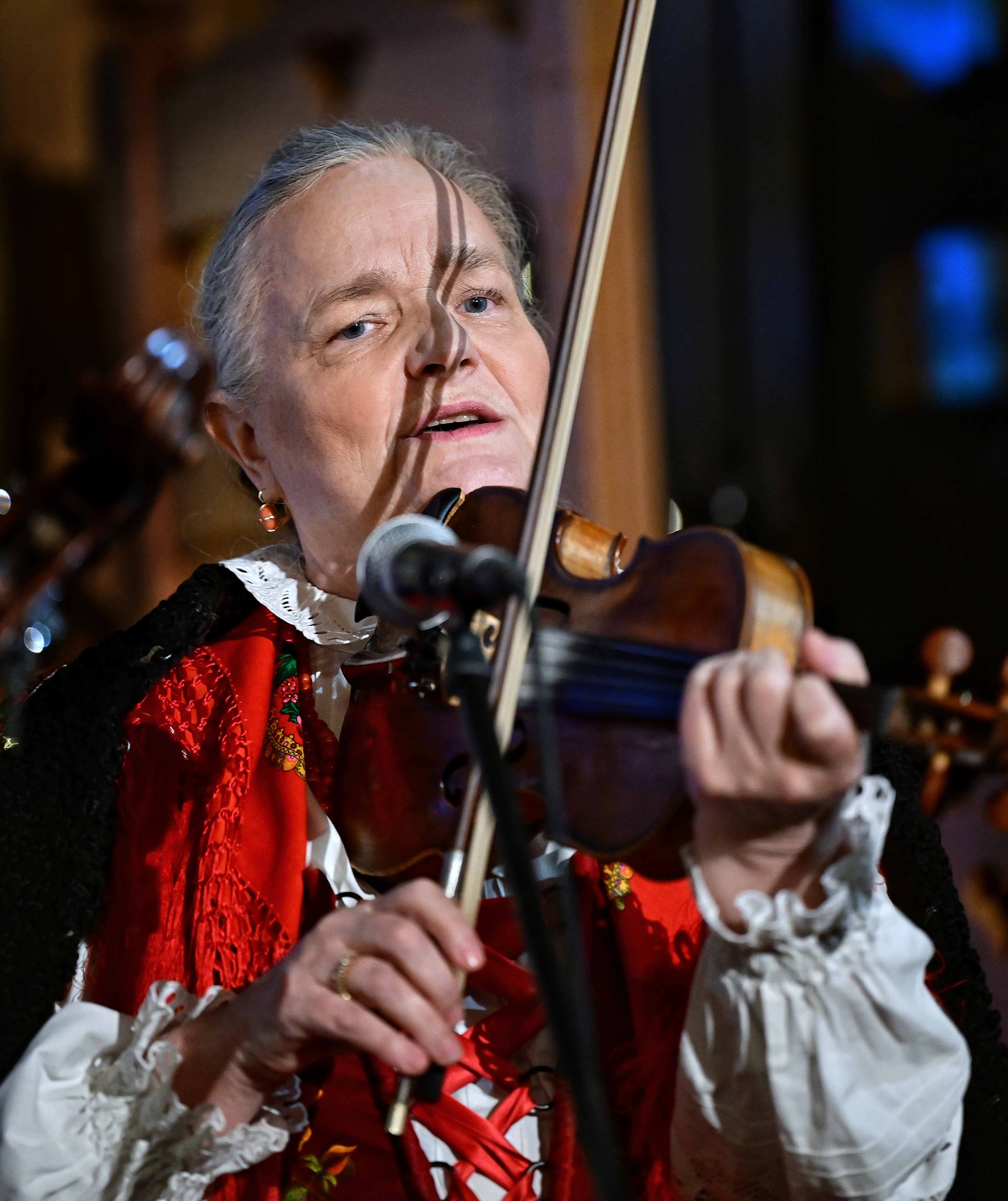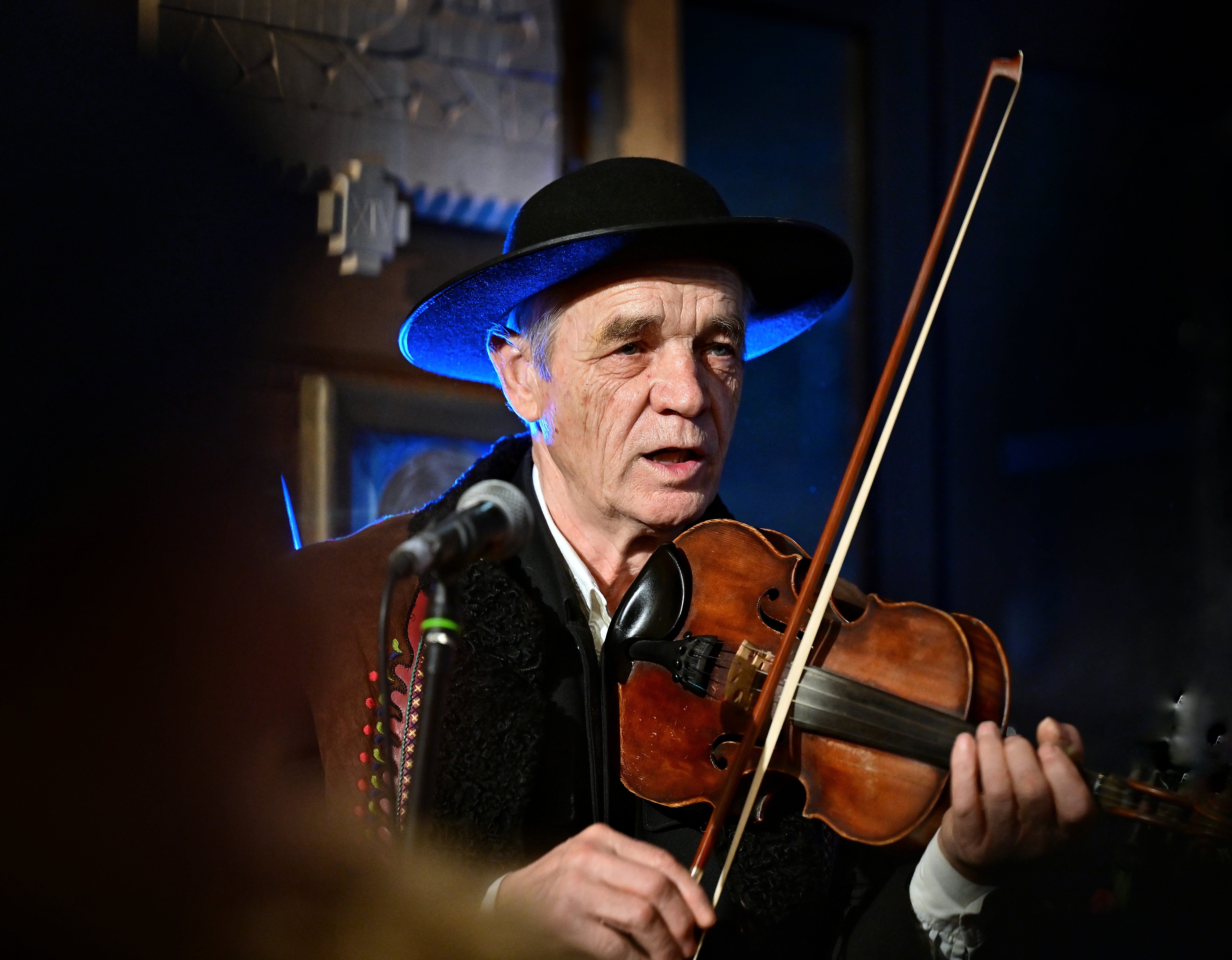 tradycyjną muzyką góralską zagraną na gęślach, basach podhalańskich,
