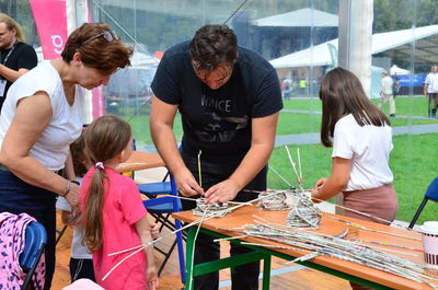 Pierwszego dnia mogli spróbować swoich sił w tworzeniu koszyków z papierowej wikliny. Nasi najmłodsi uczestnicy festiwalu z zapałem brali udział w animacji, a starsi z takim samym entuzjazmem im pomagali.